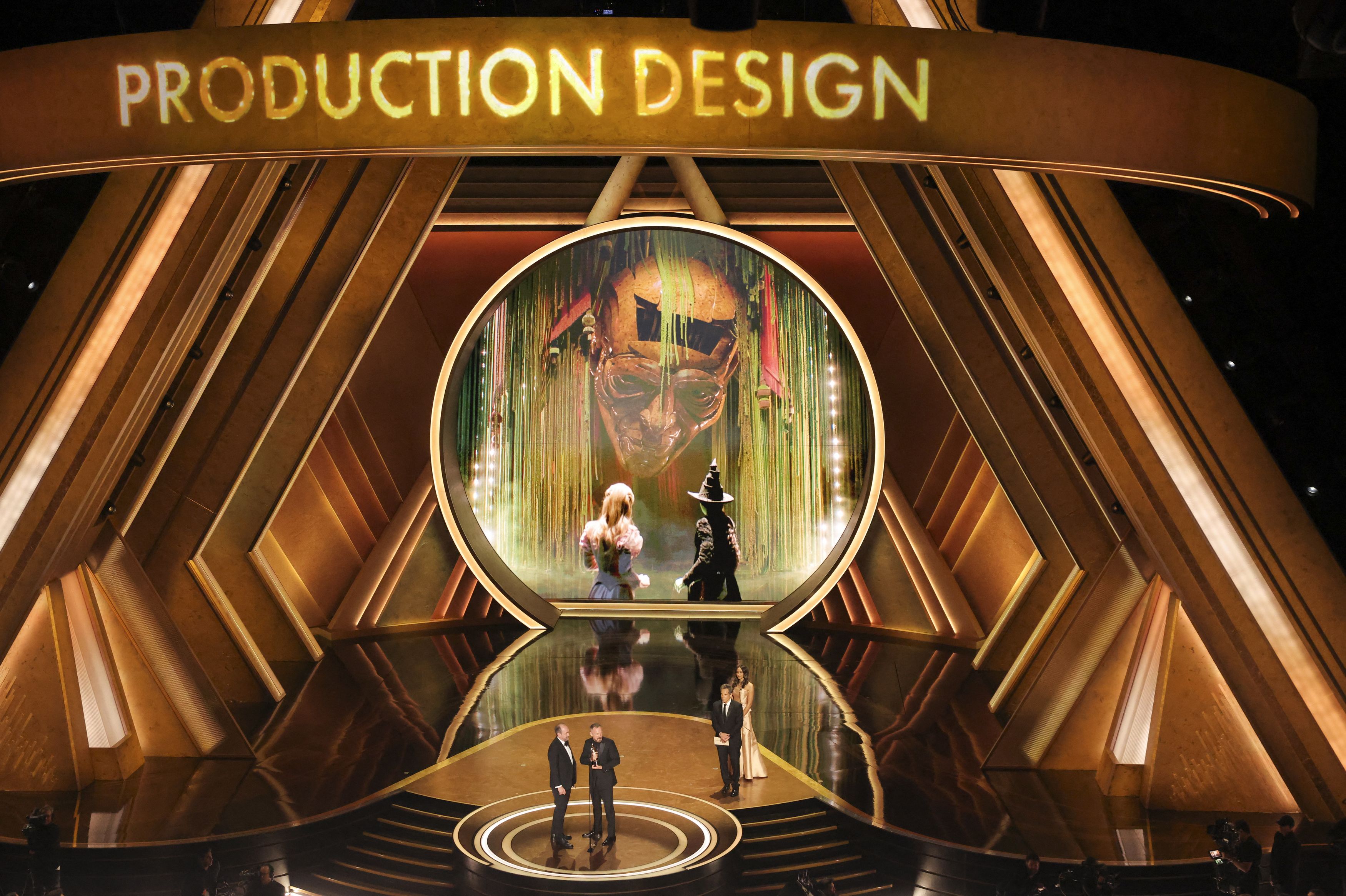 Nathan Crowley and Lee Sandales win the Oscar for Best Production Design for “Wicked” during the Oscars show at the 97th Academy Awards in Hollywood, Los Angeles, California, U.S., March 2, 2025. REUTERS/Carlos Barria