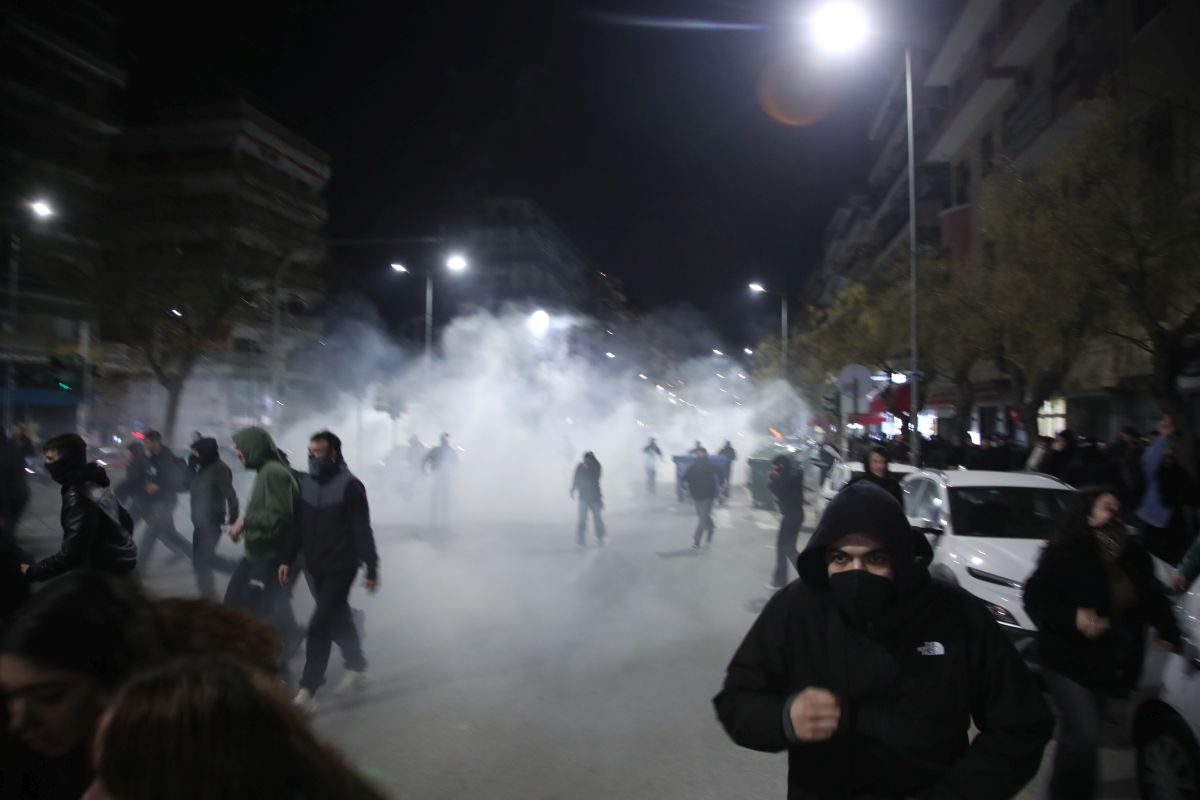 Ένταση σημειώθηκε στο κέντρο της Θεσσαλονίκης μετά το τέλος της πορείας για την τραγωδία των Τεμπών.