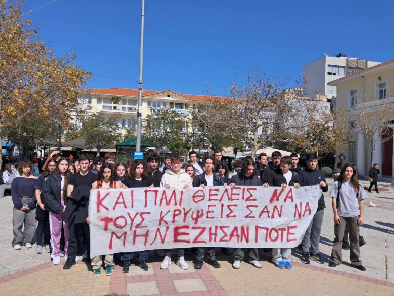 Συγκέντρωση φοιτητών και μαθητών της Λάρισας για την υπόθεση των Τεμπών πραγματοποιήθηκε και στην κεντρική πλατεία της πόλης.