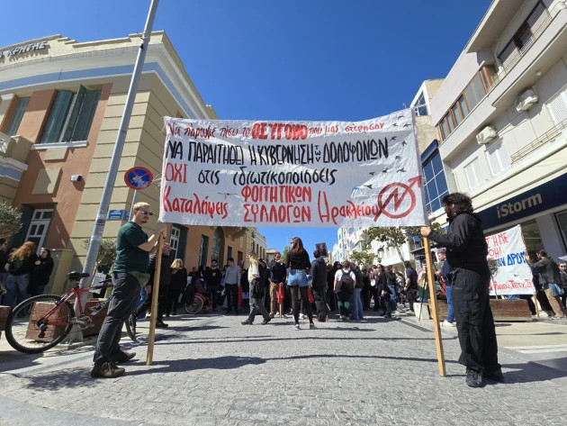 Κρατώντας πανό και φωνάζοντας συνθήματα, φοιτητές και μαθητές που πραγματοποίησαν πορεία διαμαρτυρίας στους κεντρικούς δρόμους του Ηρακλείου, δήλωσαν ότι θα δώσουν το παρών και το απόγευμα στη συγκέντρωση που θα πραγματοποιηθεί στην πλατεία Ελευθερίας, με τη συμμετοχή σωματείων εργαζομένων, συλλόγων και συλλογικοτήτων.