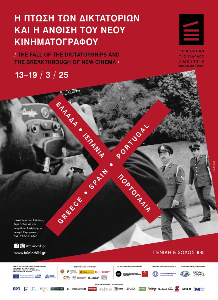Είκοσι τέσσερις εμβληματικές ταινίες μυθοπλασίας και ντοκιμαντέρ από τις τρεις χώρες θα προβληθούν κατά την διάρκεια του σπουδαίου αφιερώματος «Η πτώση των δικτατοριών και η άνθιση του νέου κινηματογράφου / Ελλάδα – Ισπανία -Πορτογαλία» που συνδιοργανώνουν στην Ταινιοθήκη της Ελλάδας (Ιερά Οδός 48 και Μεγάλου Αλεξάνδρου, μετρό Κεραμεικός, τηλ. 210 3612046), οι Ταινιοθήκες της Ελλάδας, της Πορτογαλίας και της Ισπανίας γιορτάζοντας έτσι τα 50 χρόνια από την αποκατάσταση της Δημοκρατίας.