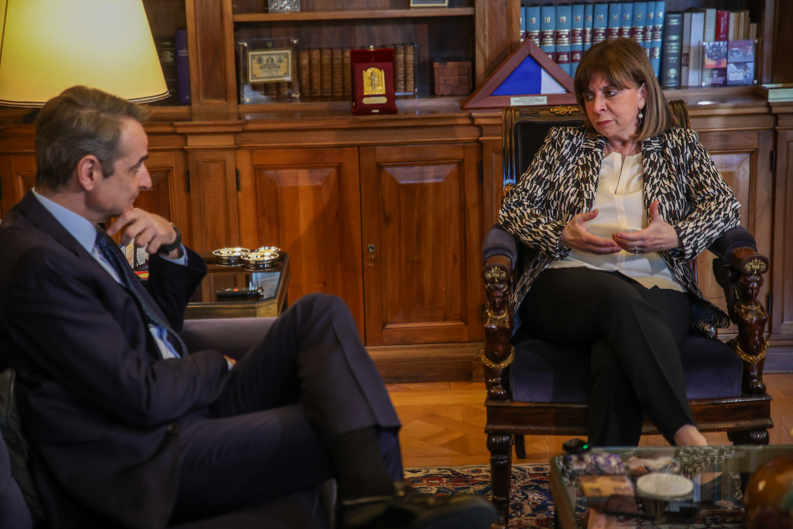 Έγινε χθες η τελευταία συνάντηση για την τακτική ενημέρωση της Προέδρου της Δημοκρατίας Κατερίνας Σακελλαροπούλου από τον Πρωθυπουργό. Το κλίμα, όπως πάντα, ήταν φιλικό, η συζήτηση αφορούσε θέματα της επικαιρότητας -εικάζω ότι ο ανασχηματισμός και η προανακριτική για τον Χρήστο Τριαντόπουλο ήταν μέσα σε αυτά- και επειδή η σχέση των δύο έχει εξελιχθεί σε αμοιβαία εκτίμηση, αναμένεται στο μέλλον να τα λένε τακτικά, αλλά ιδιωτικά. Ο Πρωθυπουργός δήλωσε ότι ήταν η πρώτη φορά που γίνονταν αυτές οι τακτικές ενημερώσεις, οι οποίες θα συνεχιστούν και επί Τασούλα.