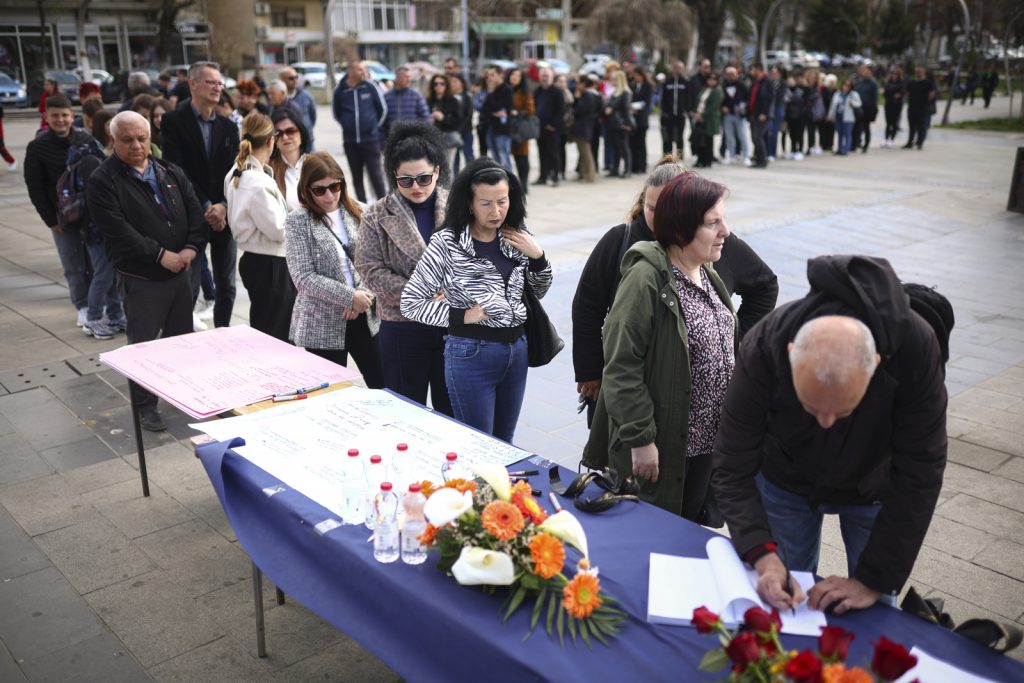 Μερικές χιλιάδες φοιτητές και μαθητές στα Σκόπια συγκεντρώθηκαν το μεσημέρι στην πλατεία του κρατικού πανεπιστημίου της πόλης «Κύριλλος και Μεθόδιος» για να αποτίσουν φόρο τιμής στους 59 νεκρούς της τραγωδίας που σημειώθηκε τα ξημερώματα της Κυριακής σε νυχτερινό κλαμπ στην πόλη Κότσανι.