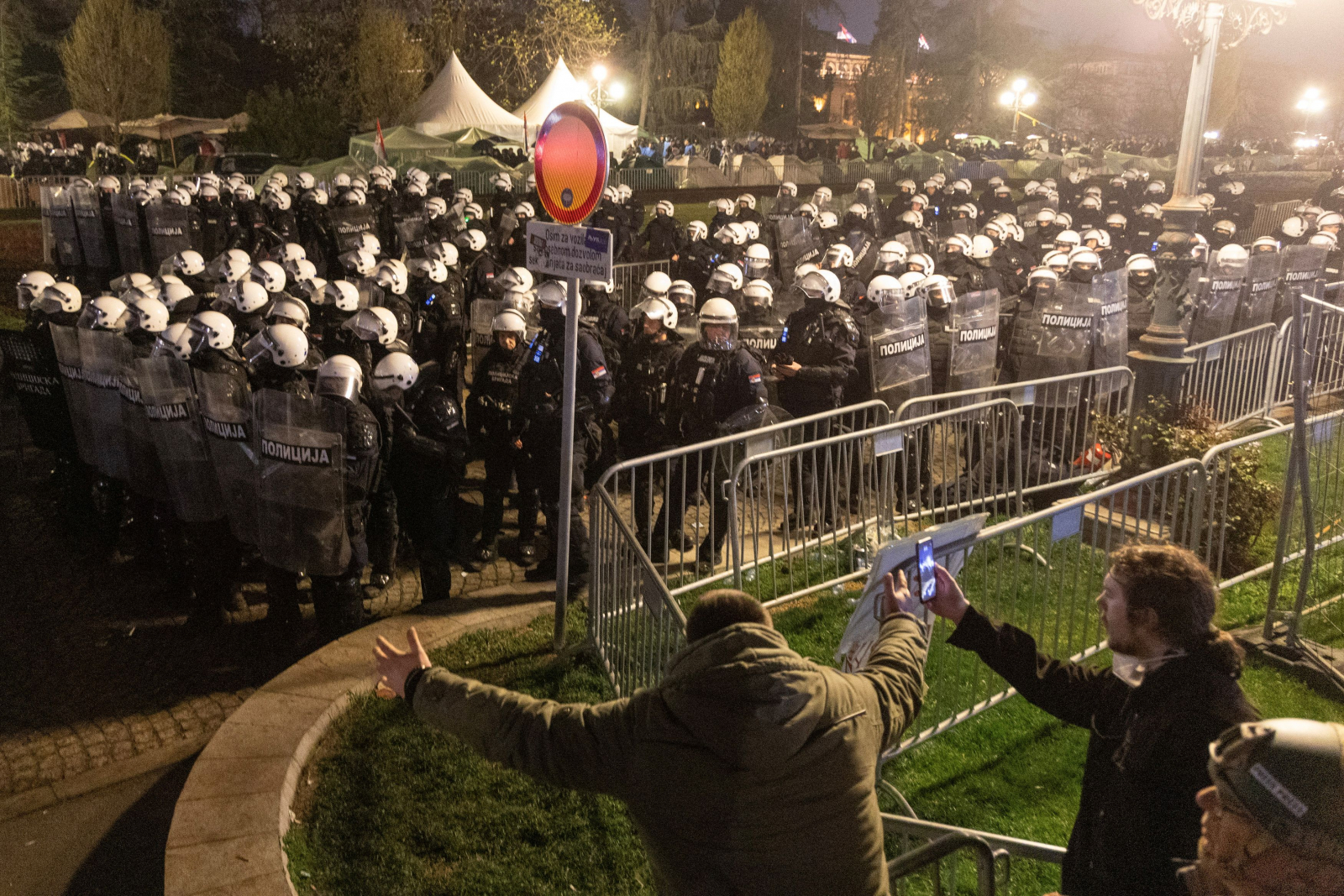 Η πιο έντονη σύγκρουση έλαβε χώρα κοντά στο σερβικό κοινοβούλιο και το «Νόβι Ντβορ», το προεδρικό μέγαρο. Φιλοκυβερνητικοί αντιδιαδηλωτές, που αυτοαποκαλούνται «Φοιτητές 2.0» ή «Φοιτητές που θέλουν να σπουδάσουν», μαζεύτηκαν σε έναν περιφρουρούμενο χώρο. Ανάμεσά τους φέρονται να βρίσκονταν και χούλιγκαν, όπως και πρώην μέλη της διαλυμένης πλέον «Μονάδας Ειδικών Επιχειρήσεων (JSO)», οι επικεφαλής της οποίας έχουν καταδικαστεί για εγκλήματα πολέμου.