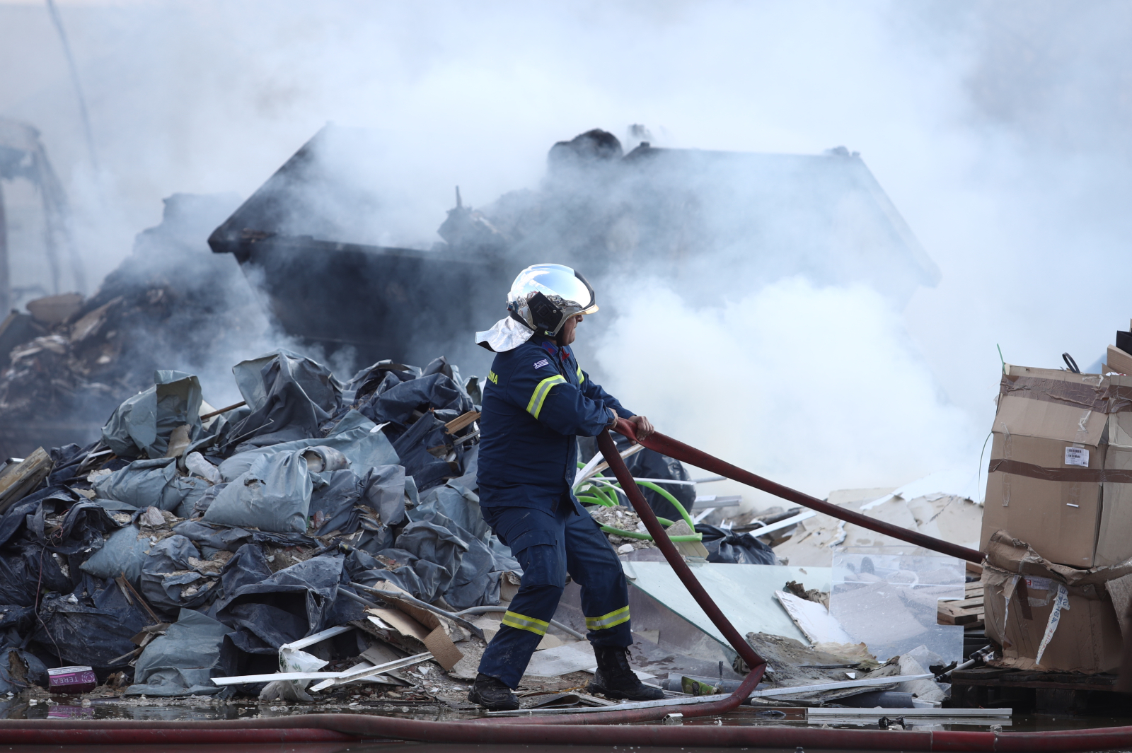 Λόγω των υλικών που καίγονται έχει δημιουργηθεί ένα πυκνό σύννεφο μαύρου καπνού και αυτό είχε ως αποτέλεσμα να σταλθεί μήνυμα από το 112 με οδηγίες για τους πολίτες.
