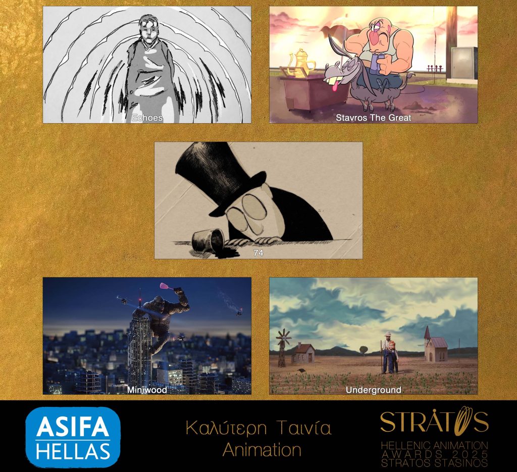 Η ιστορία του εγχώριου animation συνεχίζεται με περισσότερη εξωστρέφεια και νέες πρωτοβουλίες, όπως μας λέει ο πρόεδρος της ΑΣΙΦΑ ΕΛΛΑΣ, Κωνσταντίνος Κακαρούντας. Σχετικά με το Βραβείο Καλύτερης Ταινίας Animation του 2024, αυτό διεκδικείται από τις ταινίες «74», παραγωγή του Χαράλαμπου Μαργαρίτη (Kimonos Animation Studio), «Echoes» σε παραγωγή του Ροβινσώνα Δρόσου, «Stavros The Great: Starring In A Balkan Cartoon» σε παραγωγή του Κώστα Φιρινίδη (Dorkymations), «Miniwood» σε παραγωγή Yeti Pictures και Rabbeats και «Underground» σε παραγωγή Γιάννη Χριστοφόρου, Γιώργου Γλυνού, Στέφανου Γκάνου, Μιχάλη Καλοπαίδη, Γιάννη Ανδριτσόπουλου και Κωνσταντίνου Κοίλαρη.
