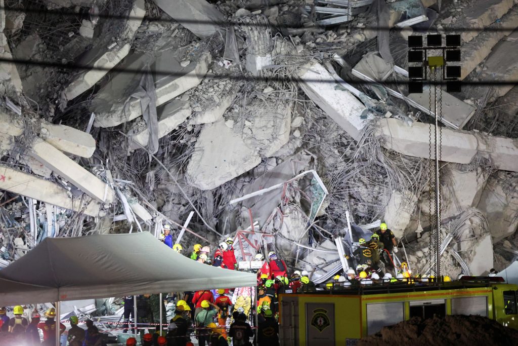 Στην Μπανγκόκ της Ταϊλάνδης, τα σωστικά συνεργεία αναζητούν επιζώντες στα ερείπια του ουρανοξύστη που κατέρρευσε.