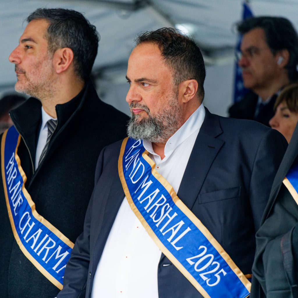Ο εφοπλιστής και πρόεδρος της ΠΑΕ Ολυμπιακός, Βαγγέλης Μαρινάκης, ήταν επί της ουσίας το κεντρικό πρόσωπο της εκδήλωσης, δεχόμενος την τιμή να είναι ένας εκ των μεγάλων τελεταρχών της παρέλασης, για να απευθύνει στη συνέχεια ένα θερμό χαιρετισμό προς την Ομογένεια και τους παρευρισκόμενους.