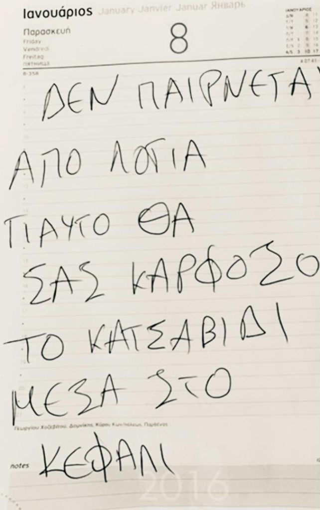 Σοκάρουν οι χειρόγραφες σημειώσεις του 51χρονου που επιτέθηκε με κατσαβίδι σε αστυνομικούς αφού εισέβαλε στο Αστυνομικό Τμήμα Κορωπίου.