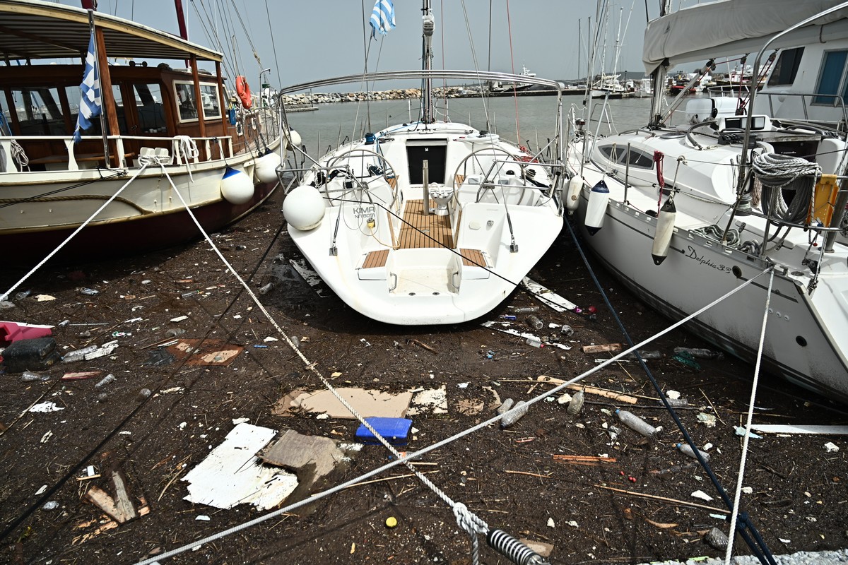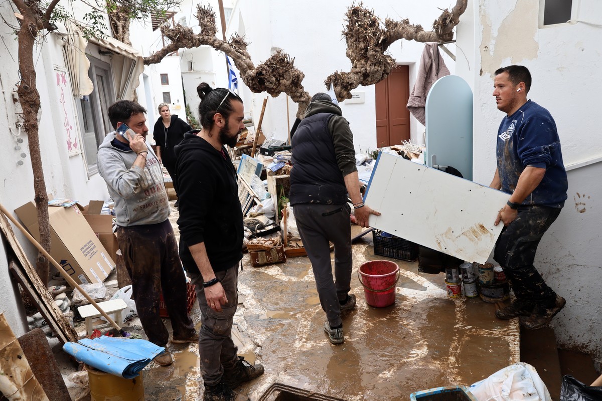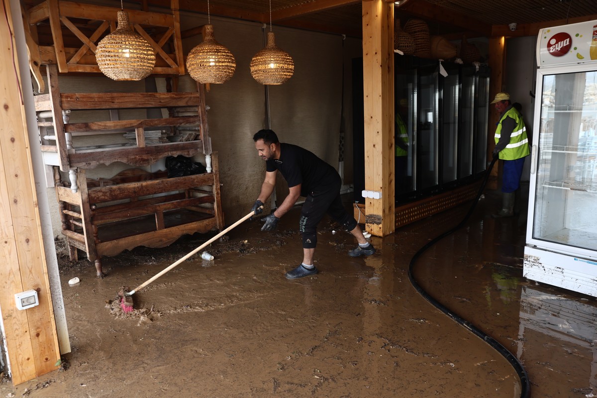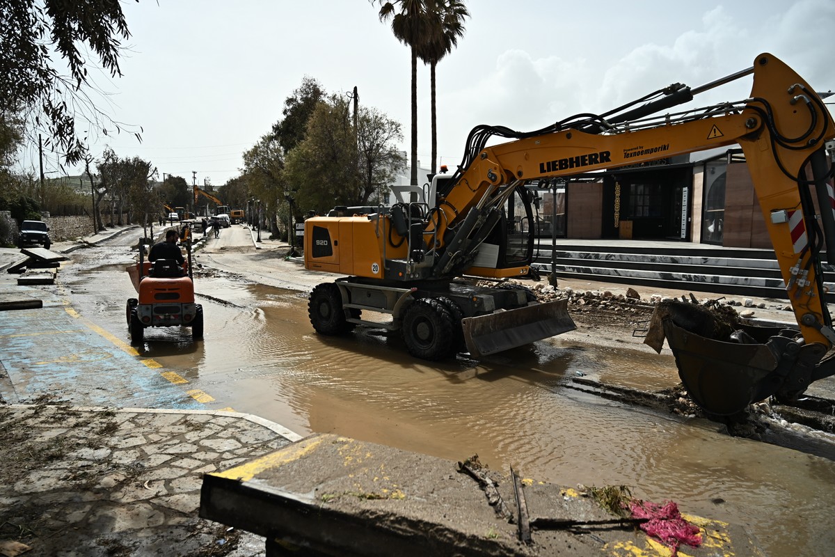 Από το πρωί της Τρίτης συνεργεία και κάτοικοι προσπαθούν να καθαρίσουν την περιοχή, ωστόσο το έργο τους είναι εξαιρετικά δύσκολο.