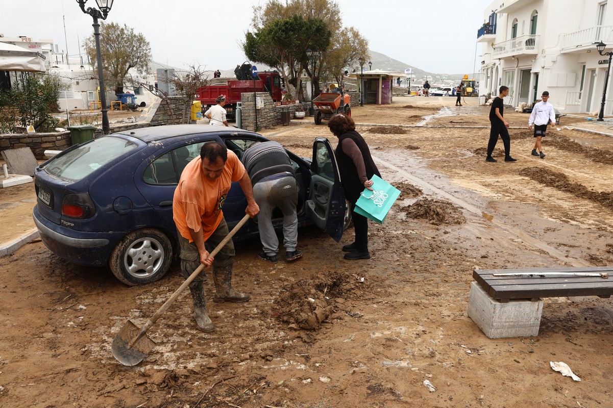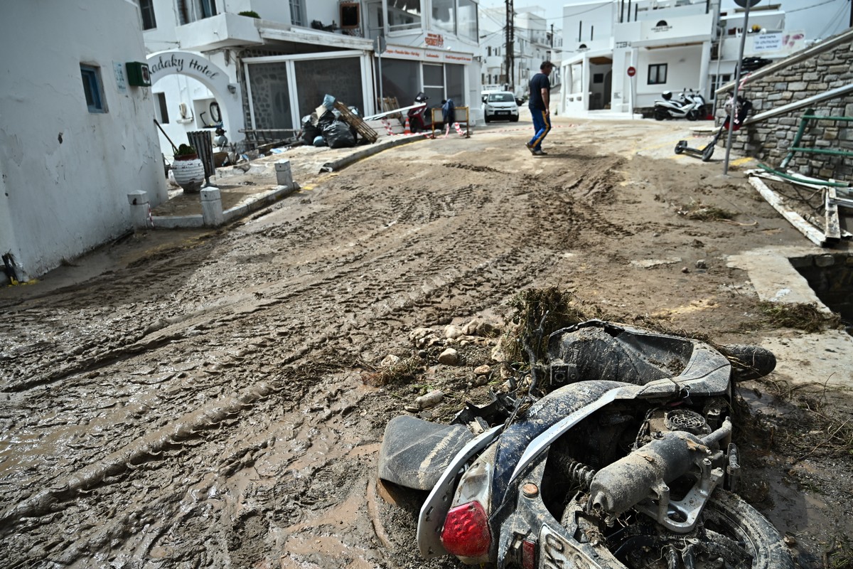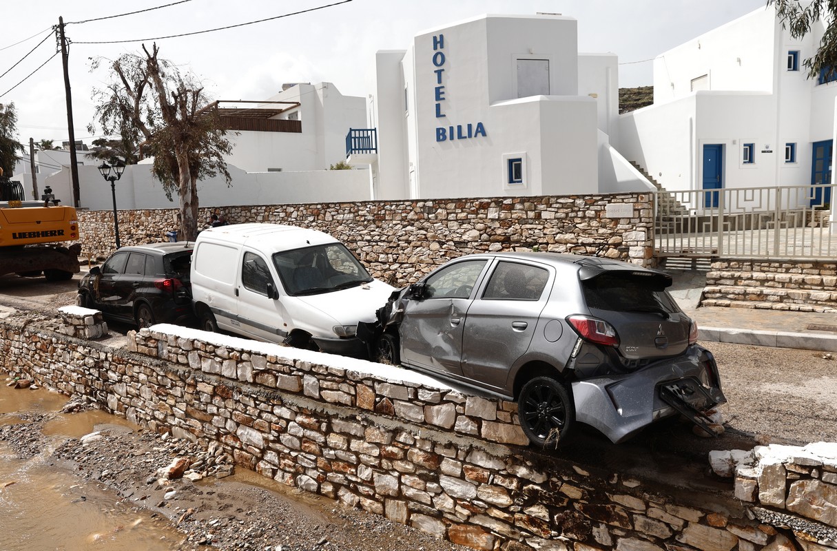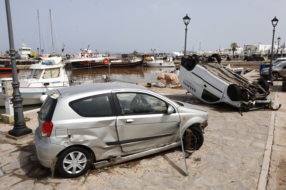 Ιδιαίτερα ισχυρός ήταν το χτύπημα των καιρικών φαινομένων στην Πάρο με αποτέλεσμα να προκληθούν σημαντικές ζημιές κυρίως στην περιοχή της Νάουσας. Τα ορμητικά νερά παρέσυραν τα πάντα στο πέρασμά τους με αποτέλεσμα το λιμάνι της περιοχής να γεμίσει από φερτά υλικά, οχήματα και λάσπη.