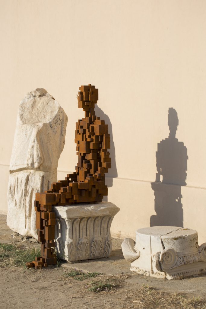 Ο Antony Gormley, ένας από τους πιο αναγνωρισμένους γλύπτες της εποχής μας, δήλωσε ότι η έκθεση ήταν για αυτόν ένα τολμηρό πείραμα. Η φιγούρα ενός ανθρώπου που κάθεται στις παρυφές του αρχαίου χώρου (σε ένα αγαπημένο σημείο των επισκεπτών για φωτογράφιση) εγείρει θέματα γύρω από τη σύνδεσή του στον χώρο και στον χρόνο, μπορεί να ιδωθεί ως ένα είδος κατάλυσης στον αρχαιολογικό χώρο. Τι συμβολίζει αυτή η μυστική φιγούρα;