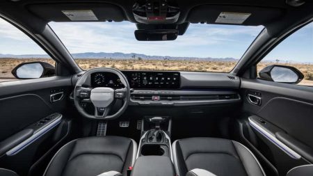 Στο εσωτερικό η KIA έχει τοποθετήσει το νεότερο «συνδυασμό» οθονών για τον πίνακα οργάνων και το infotainment (12,3+ 12,3 ίντσες) συν ακόμα μία στο ενδιάμεσό τους για τον έλεγχο του κλιματισμού, οι οποίες δημιουργούν μια ενιαία επιφάνεια με διαγώνιο σχεδόν 30 ιντσών.