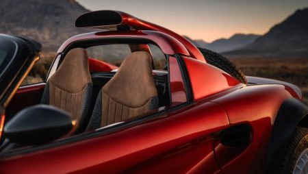 Στα ενδότερα, η Get Lost έχει επιλέξει μια πολυτελή προσέγγιση όπου κυριαρχεί το καφέ δέρμα Alcantara ενώ σε πλήρη συμφωνία με τον προσανατολισμό της κατασκευής έχει προστεθεί και ένα χειρόφρενο όπως αυτά που συναντάμε στα αγωνιστικά ράλι.
