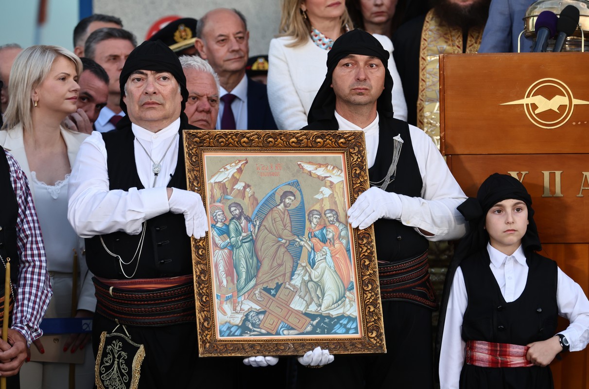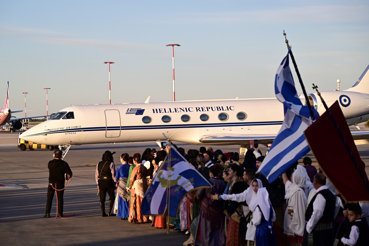 Στο αεροδρόμιο σε κλίμα κατάνυξης, πραγματοποιήθηκε μια μικρή τελετή στην οποία συμμετείχαν σύλλογοι και αγήματα των Ενόπλων Δυνάμεων.
