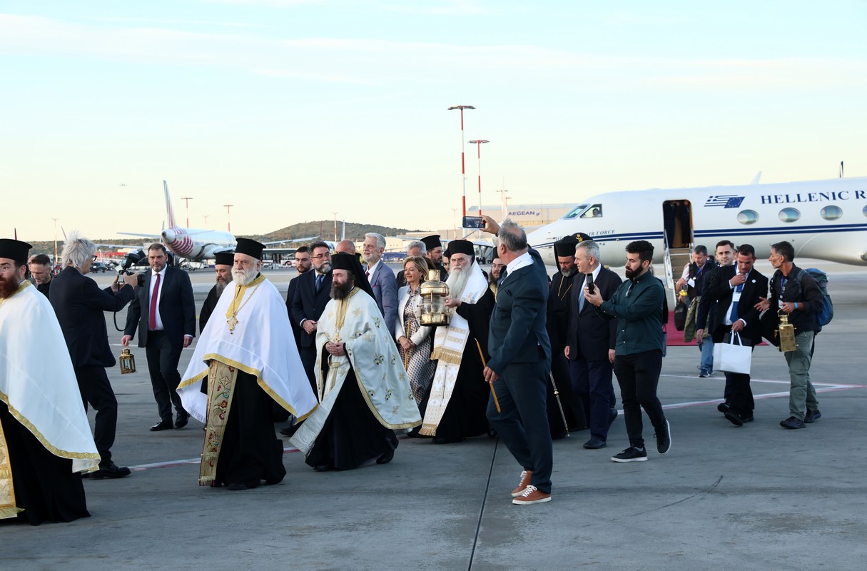 Στις 19:37 προσγειώθηκε στο αεροδρόμιο “Ελευθέριος Βενιζέλος” η ειδική πτήση η οποία μετέφερε το Ανέσπερο ‘Αγιο Φως στην Αθήνα το οποίο παρέλαβε από τα Ιεροσόλυμα ο υφυπουργός Εξωτερικών, Γιάννης Λοβέρδος, από τον Μακαριώτατο Πατριάρχη Ιεροσολύμων, κ.κ. Θεόφιλο Γ’.