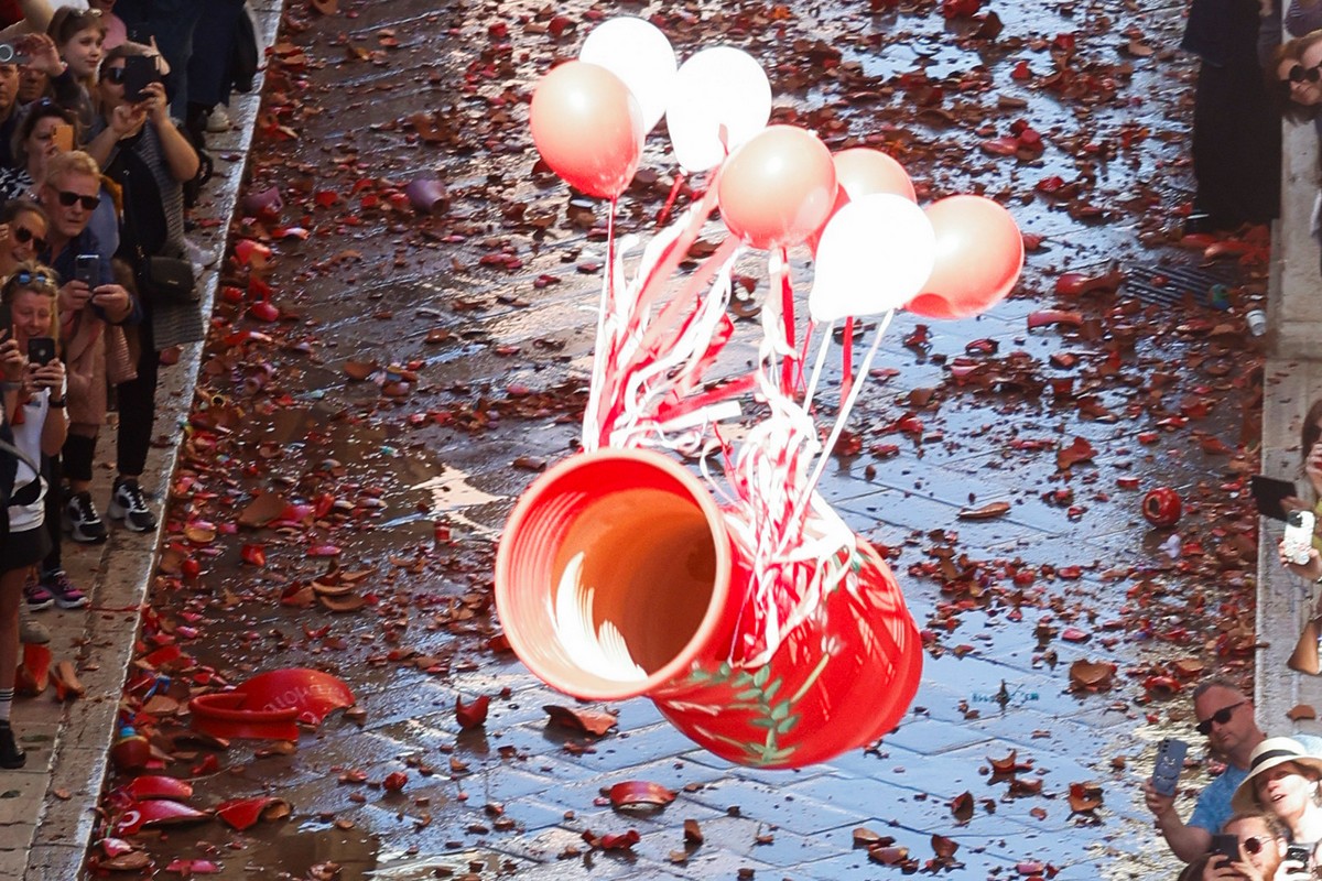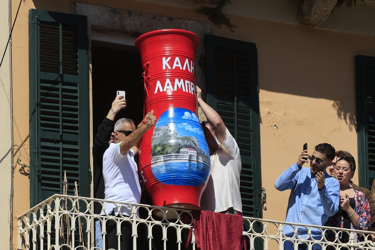 Οι μπότηδες, τα πήλινα κανάτια με στενό στόμιο και δυο χερούλια στο πλάι, δεμένα με κόκκινες κορδέλες, έπεσαν και φέτος βροχή. Ο κόσμος είχε μαζευτεί από νωρίς στη Σπιανάδα, στο Λιστόν, σε κάθε καντούνι του ιστορικού κέντρου για να παρακολουθήσει τα δρώμενα. Όπως μπορείτε να δείτε και στο βίντεο από το corfu tv news.