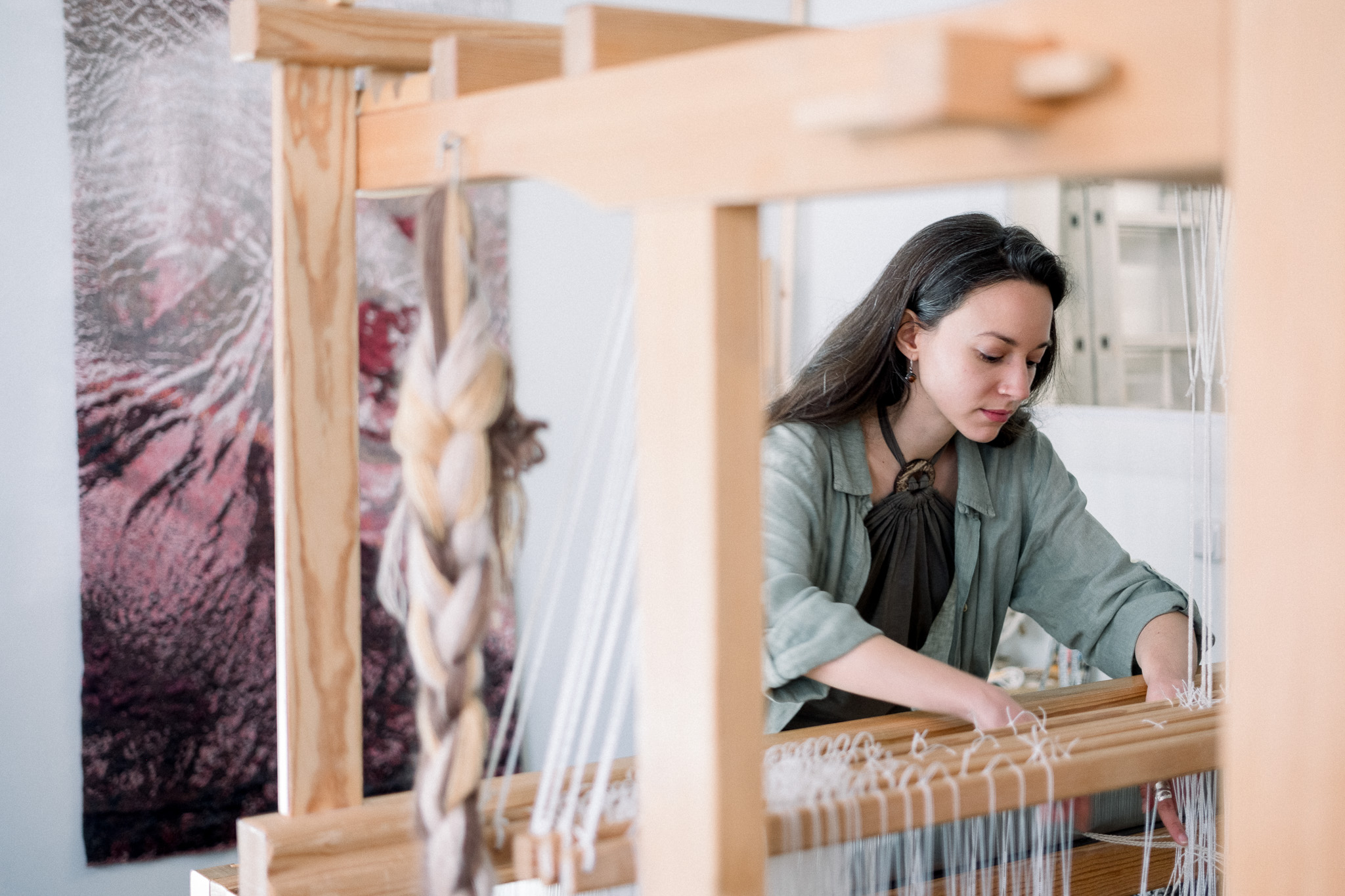 Όταν κάθεσαι σε έναν χειροκίνητο αργαλειό με τα νήματά σου, έχεις άλλη επαφή με την υλικότητα. Ξαφνικά παύει να σε απασχολεί το μετά, το τι θα γίνει το ύφασμα. Είναι απελευθερωτικό. Είσαι εσύ και ο αργαλειός σου και μαζί φτιάχνετε μια ύφανση».