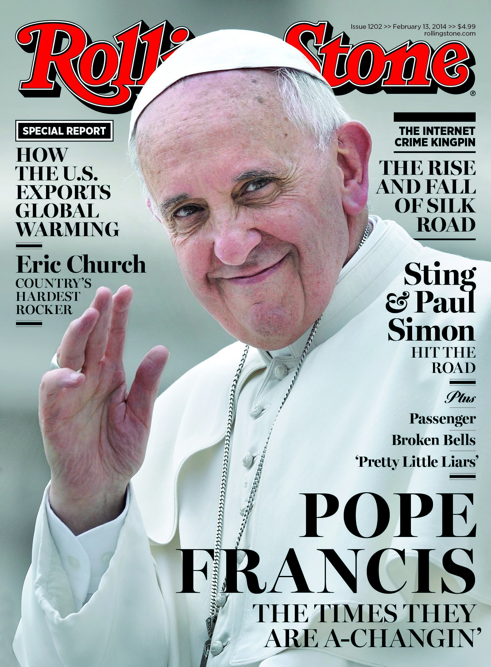 Άλλωστε ο Πάπας Φραγκίσκος, ο πρώτος που επέλεξε ένα όνομα με ευθείες και προφανείς συνδηλώσεις σεμνοταπεινοσύνης έπειτα από 14 Κλήμηδες, 16 Βενέδικτους και 21 Ιωάννηδες, είχε ήδη εκκολαφθεί σε οικουμενικό σύμβολο. Για κάποιους ακόμα και σε σταρ. Μόλις εννέα μήνες μετά την εκλογή του, η οποία κοινοποιήθηκε στον κόσμο μέσω της τελετουργίας του λευκού καπνού (fumata bianca) που ακολουθείται από το 1914, ο 76χρονος τότε Πάπας φιγούραρε φαρδύς πλατύς στο εξώφυλλο του περιοδικού Time.