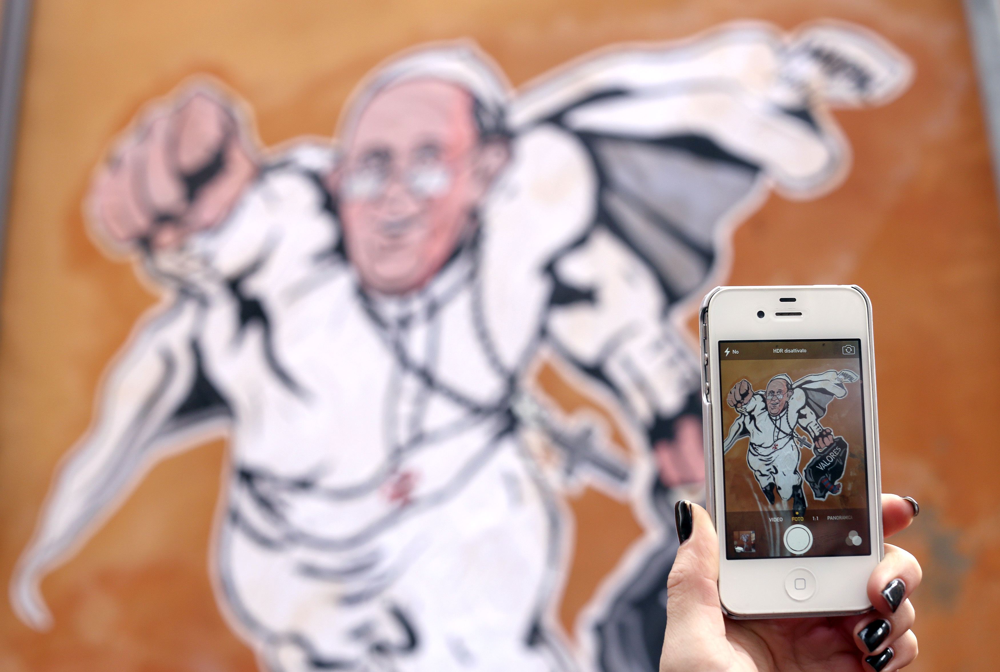 Η τέχνη του δρόμου απέδωσε διαστάσεις σούπερ ήρωα στον Πάπα Φραγκίσκο ήδη από τους πρώτους μήνες της θητείας του