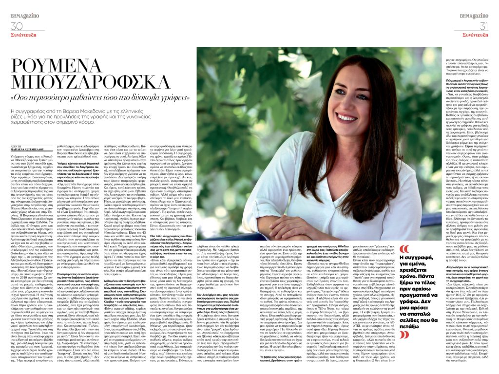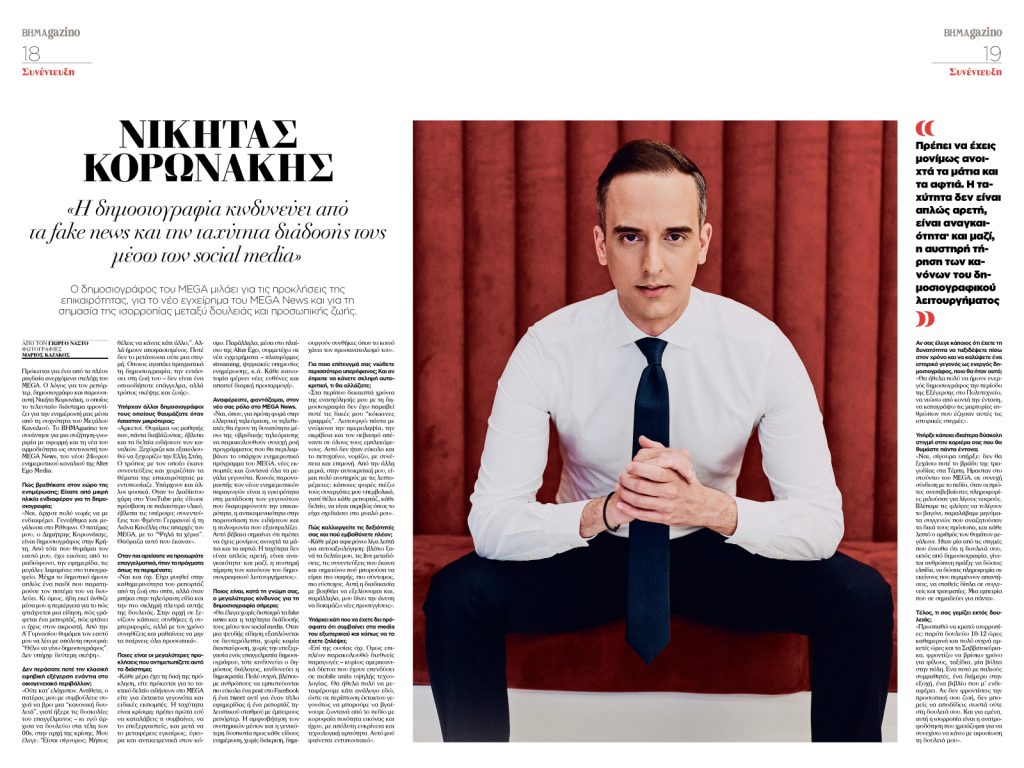 Ακόμα συνομιλούμε με ενδιαφέροντες ανθρώπους που στηρίζουν με πάθος αυτό που κάνουν και έχουν ωραίες ιστορίες να αφηγηθούν: τον ηθοποιό και σκηνοθέτη Αντώνη Αντωνόπουλο, τον δημοσιογράφο και παρουσιαστή του MEGA Νικήτα Κορωνάκη που μιλάει και για το νέο υβριδικό κανάλι MEGA NEWS και την συγγραφέα Ρομένα Μπουζαρόφσκα.