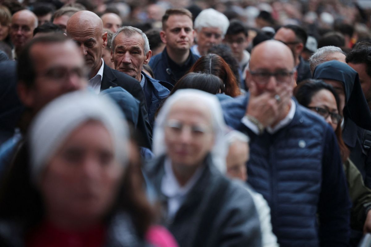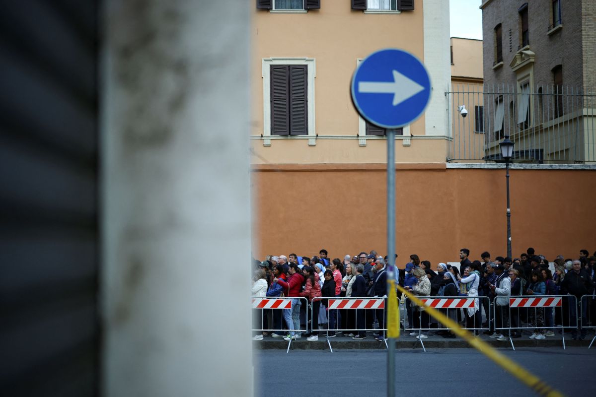 Πλήθος κόσμου συρρέει από τις πρώτες πρωινές ώρες στην πλατεία του Αγίου Πέτρου για να αποχαιρετίσει τον Πάπα Φραγκίσκο, που πέθανε τη Δευτέρα 21/4 σε ηλικία 88 ετών.