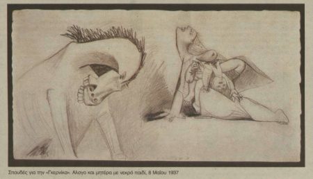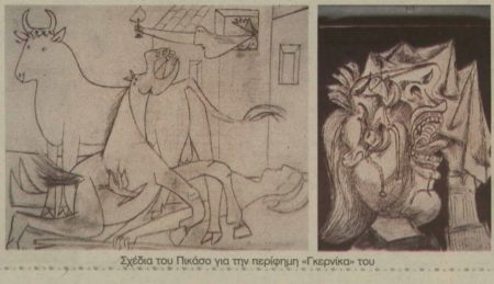 »Δεν πρέπει να ξεχνάμε ότι οι πρώτες γραμμές του έργου μπήκαν την Πρωτομαγιά του 1937. Σε κατάσταση φρενίτιδας σχεδόν ο μεγάλος Ισπανός έκανε τις πρώτες 10 ημέρες του Μαΐου το ένα μετά το άλλο διάφορα σχέδια που στη συνέχεια μετέφερε σε καμβά.