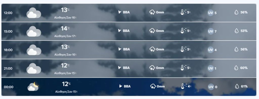 Θερμοκρασία: Από 14 έως 19 και στη νότια Κρήτη έως 22 βαθμούς Κελσίου.