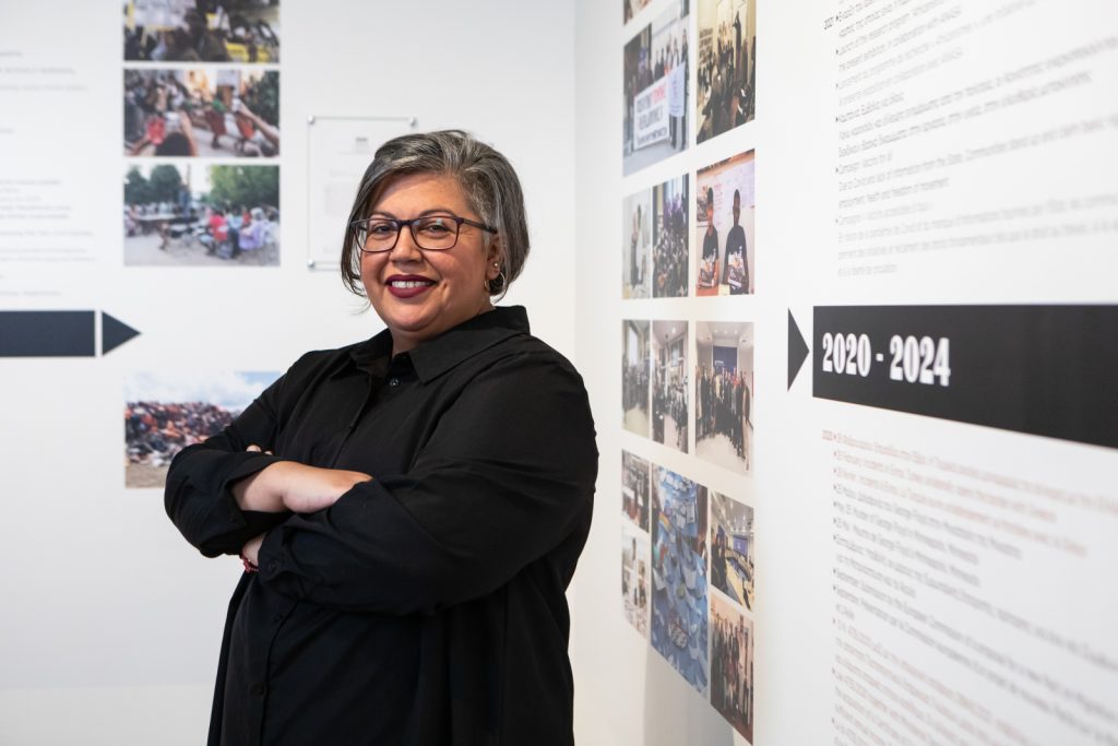 Η Άντλα Σασάτη στο Χρονολόγιο της έκθεσης στο Μουσείο Μπενάκη. Φωτογραφία: Σίσσυ Μόρφη