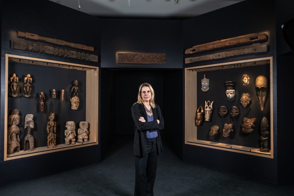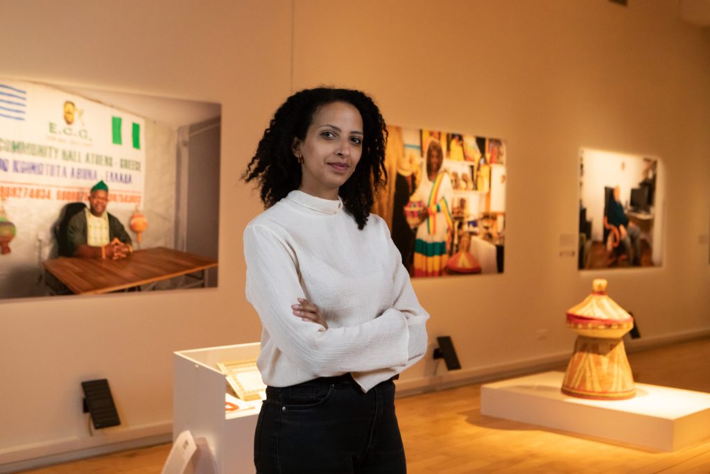 Η επιμελήτρια Σοφία Χανδακά στην έκθεση «Η Αφρική ανάμεσά μας*». Φωτογραφία: Σίσσυ Μόρφη