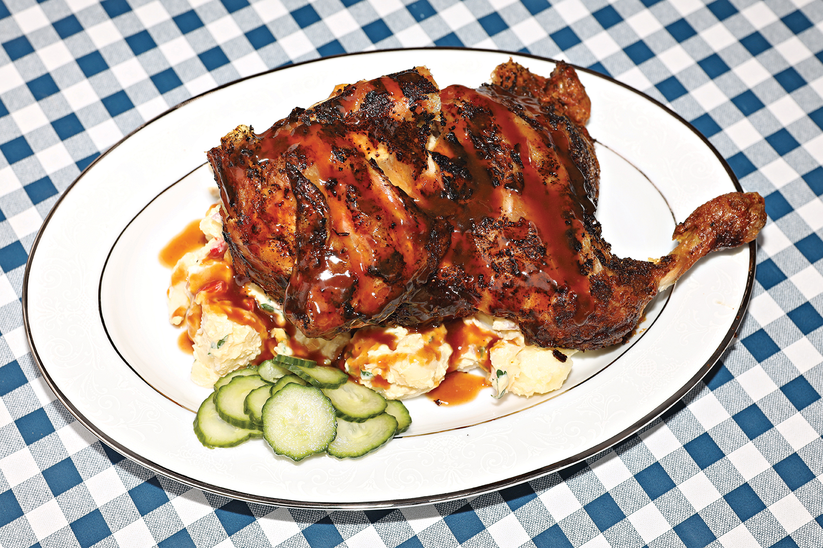 Κοτόπουλο σούβλας με Memphis rub, πατατοσαλάτα & bourbon glaze