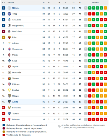 Φουλ για τίτλο η ασταμάτητη Νάπολι. Με γκολ του Ρασπαντόρι από το πρώτο ημίχρονο οι «παρτενοπέι» επικράτησαν με 1-0 στην έδρα της Λέτσε και τρεις αγωνιστικές πριν το φινάλε της Serie A ξέφυγαν με έξι βαθμούς από την Ίντερ που σε λίγη ώρα θα υποδεχτεί τη Βερόνα.