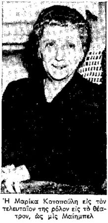 »Το ξανθό κοριτσάκι, που περιέγραφαν οι παλιοί Μεταξουργιώτες, εκεί στο τέλος του περασμένου αιώνα, είχε ένα όνομα που πολύ σύντομα επρόκειτο να το δοξάσει: Μαρίκα Κοτοπούλη.