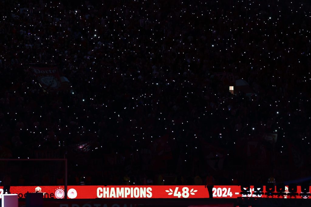 Πριν ξεκινήσει η απονομή, οι φίλοι των Πειραιωτών, οι οποίοι είχαν γεμίσει ασφυκτικά το Γ.Καραϊσκάκης, έφτιαξαν μια πολύ όμορφη ατμόσφαιρα με βραχιόλια που φώτιζαν, δημιουργώντας πολύ όμορφη ατμόσφαιρα και συμμετέχοντας με τον δικό του τρόπου στους πανηγυρισμούς για το 48ο πρωτάθλημα.