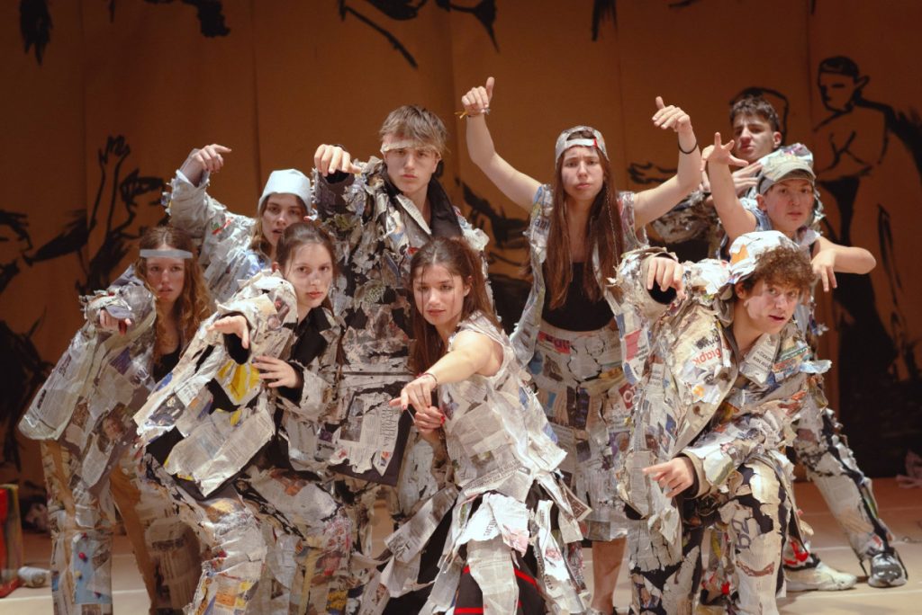 Η θεατρική ομάδα του Κολλεγίου σε σκηνή από τον «Πλούτο» του Αριστοφάνη