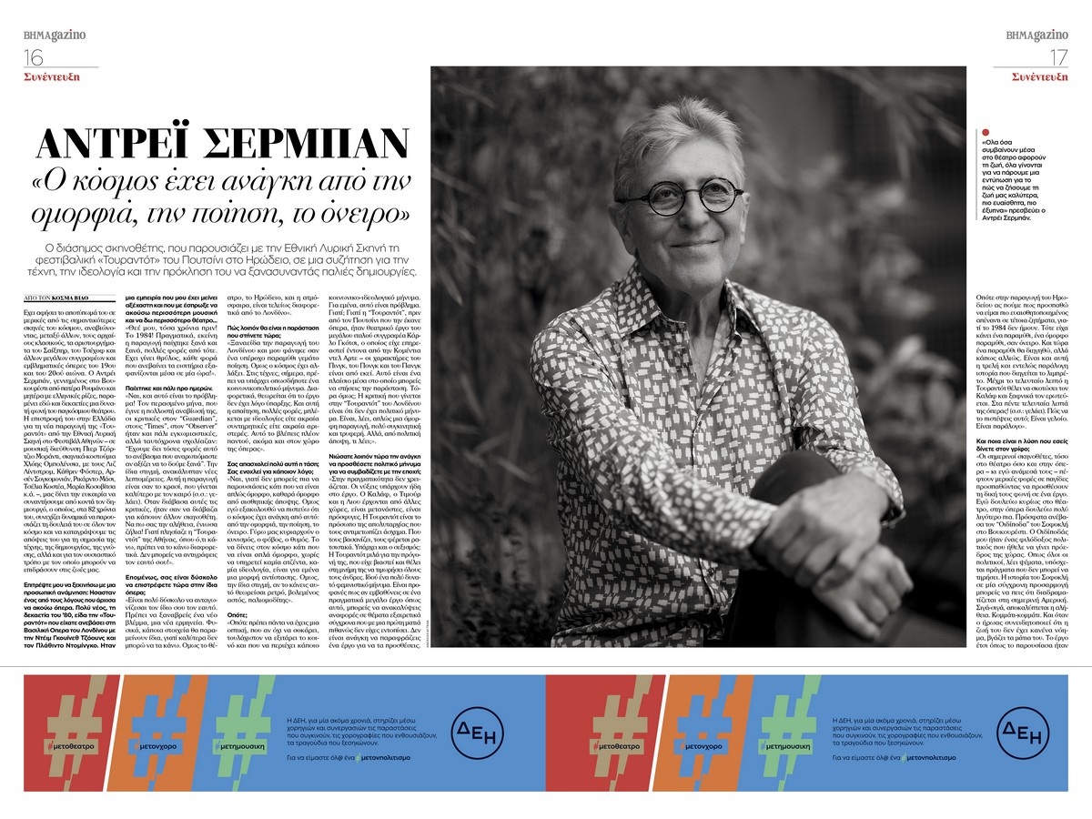 Ακόμα στο BHMAGAZINO αυτής της εβδομάδας συνεντεύξεις από καταξιωμένους εκπροσώπους της τέχνης και του πολιτισμού και ενδιαφέροντα θέματα για όσα συζητάμε και πρέπει να γνωρίζουμε.