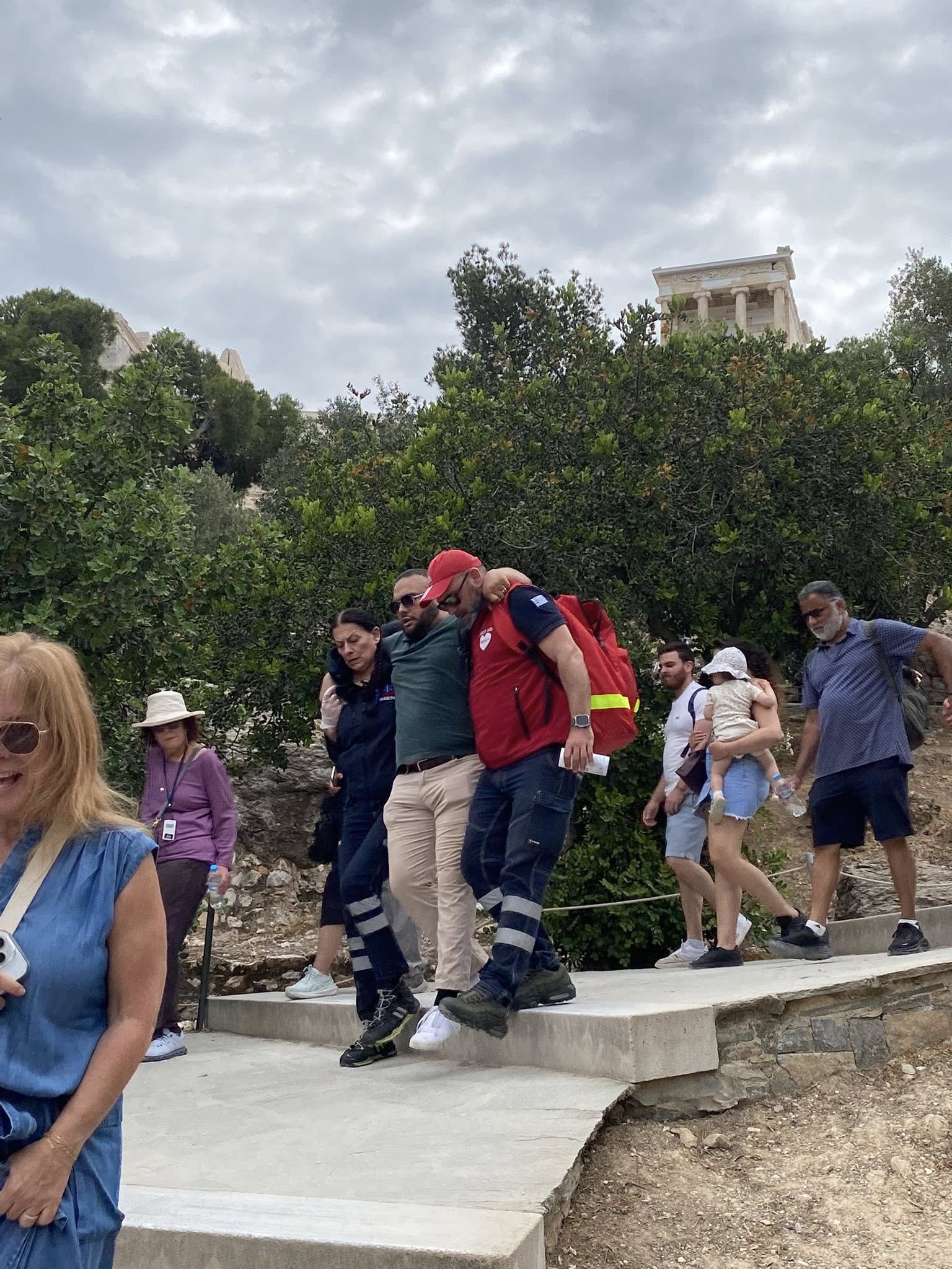 Πριν από περίπου πέντε μέρες, στον αρχαιολογικό χώρο της Ακρόπολης, μία γυναίκα που παρουσίασε αστάθεια και έντονη ζάλη, λόγω υπογλυκαιμικού σοκ, έπρεπε να κατέβει στην είσοδο προκειμένου να της παρασχεθούν οι πρώτες βοήθειες και να καθίσει σε δροσερό – σκιερό μέρος.