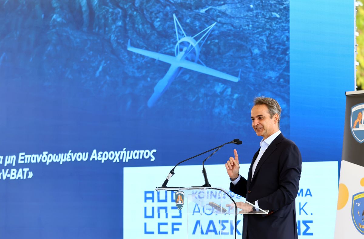 Στην τελετή ένταξης των προηγμένης τεχνολογίας μη επανδρωμένων αεροσκαφών V-BAT στην Ανώτατη Στρατιωτική Διοίκηση Εσωτερικού και Νήσων (ΑΣΔΕΝ), δωρεά του κοινωφελούς ιδρύματος «Αθανάσιος Κ. Λασκαρίδης», παρέστη σήμερα το πρωί ο πρωθυπουργός Κυριάκος Μητσοτάκης.