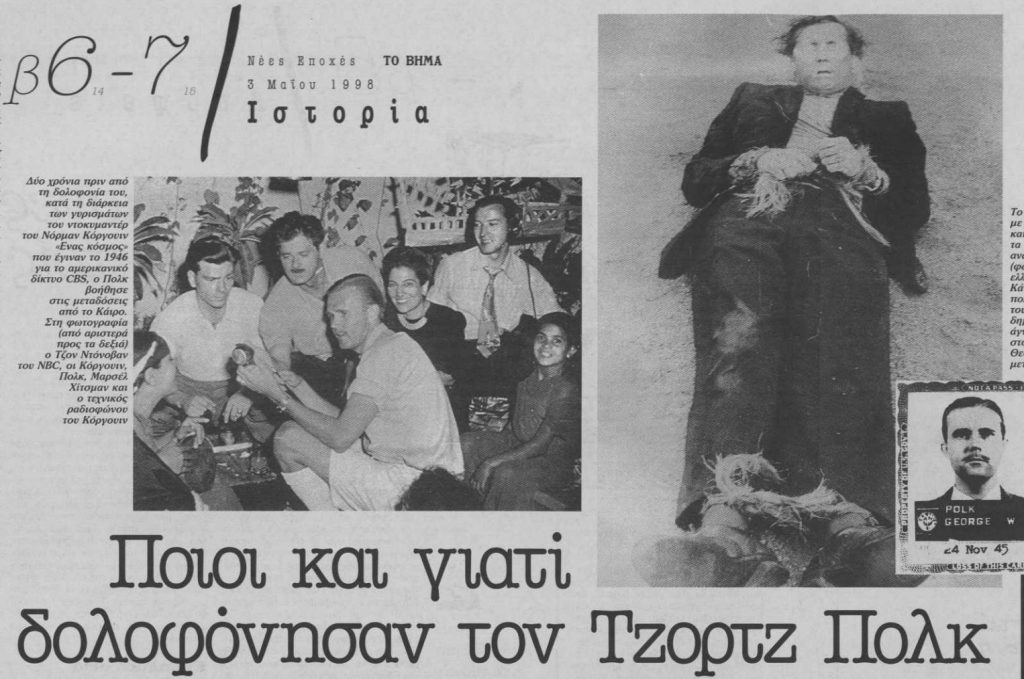 »Γράφει: “Ο Πολκ έφθασε σ’ ένα καΐκι… Στο καΐκι τον περίμεναν οι άλλοι κι ο θάνατος. Ποιοι είναι οι άλλοι; Εμείς έχουμε σχηματίσει τη γνώμη μας, αλλά επειδή δεν έχουμε απόδειξη την κρατάμε για τον εαυτό μας”. Και καταλήγει: “Θεωρούμε σχεδόν βέβαιο ότι οι Αμερικανοί ξέρουν ποιοι είναι”.