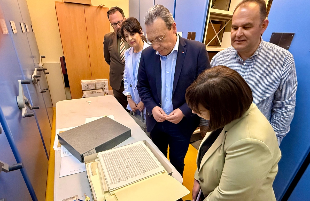 Στη συνέχεια, τον Σωκράτη Φαμελλο και το κλιμάκιο του ΣΥΡΙΖΑ υποδέχθηκε στο Μέγαρο Μουσικής ο Διευθυντής του του Συλλόγου «Οι Φίλοι της Μουσικής» και μέλος του ΔΣ του Μουσείου «Μίκης Θεοδωράκης», Αλέξανδρος Χαρκιολάκης, όπου μαζί με την κυρία Βράκα ανέλαβαν ξενάγηση στο αρχείο του μουσικοσυνθέτη.