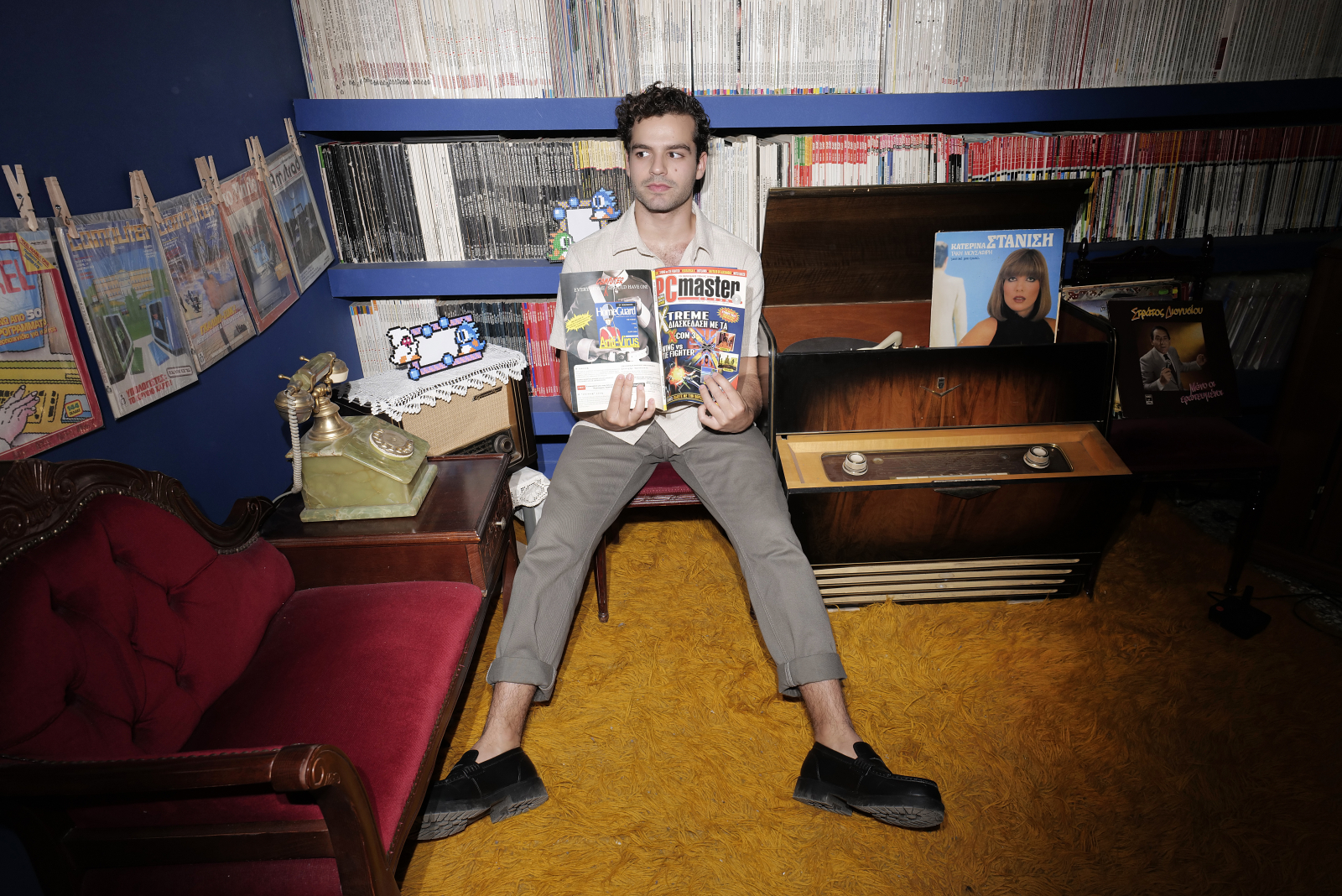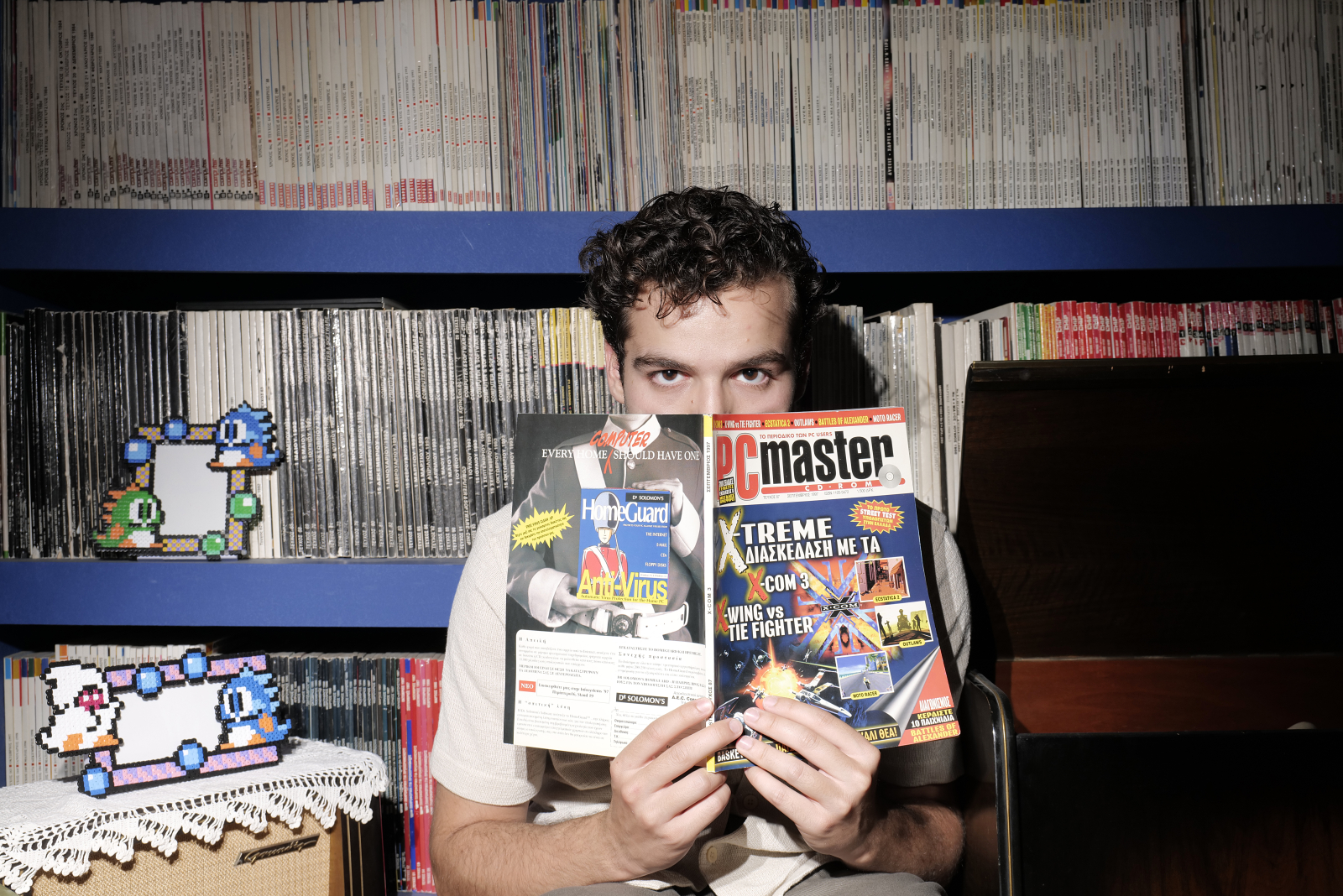 Είχαμε την ευκαιρία να τον συναντήσουμε λίγο πριν την βράβευση του, ανάμεσα σε CRT οθόνες και ξεχασμένα πληκτρολόγια, στο Ελληνικό Μουσείο Πληροφορικής στο Μοσχάτο. Είχε έρθει κατευθείαν από το γύρισμα της σειράς και ήταν κουρασμένος. Χωρίς να πάρει ανάσα σχεδόν, ετοιμάστηκε για την φωτογράφιση. Με απόλυτη συγκέντρωση και επαγγελματισμό ακολουθεί κάθε οδηγία του φωτογράφου. Καταλαβαίνει αμέσως τι ζητάται από εκείνον. Είναι, με λίγα λόγια, «παρών».