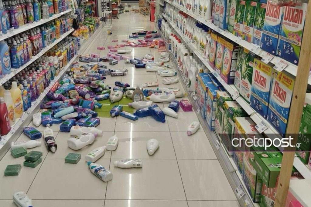Μάλιστα, προϊόντα έπεσαν από τα ράφια των σούπερ μάρκετ προκαλώντας ζημιές.