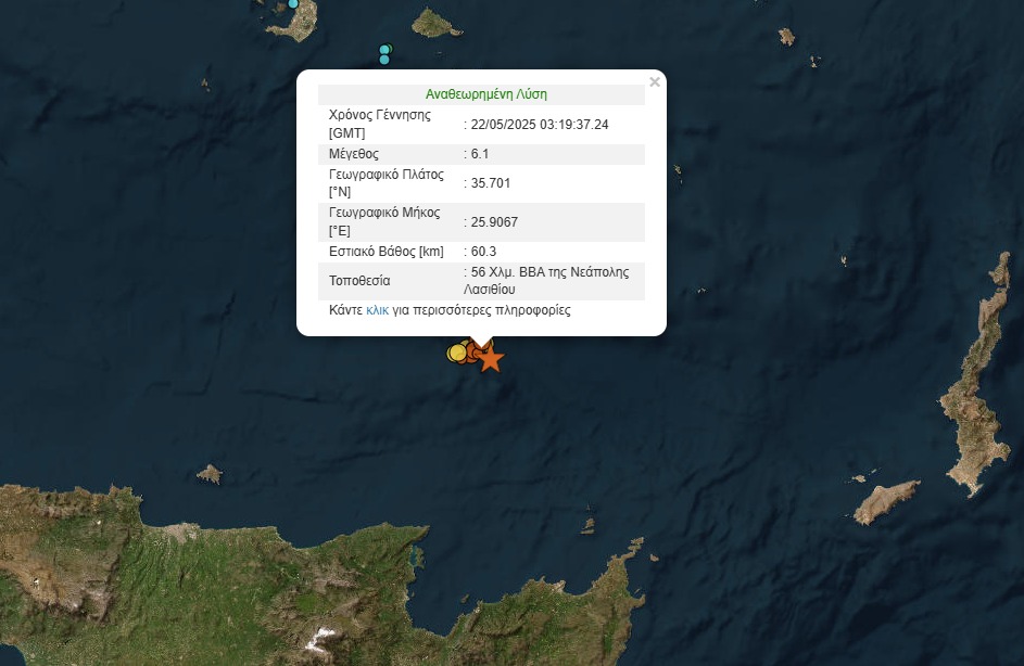 Ισχυρός σεισμός 6,1 ρίχτερ σημειώθηκε πριν από λίγο στα ανοιχτά της Κρήτης.