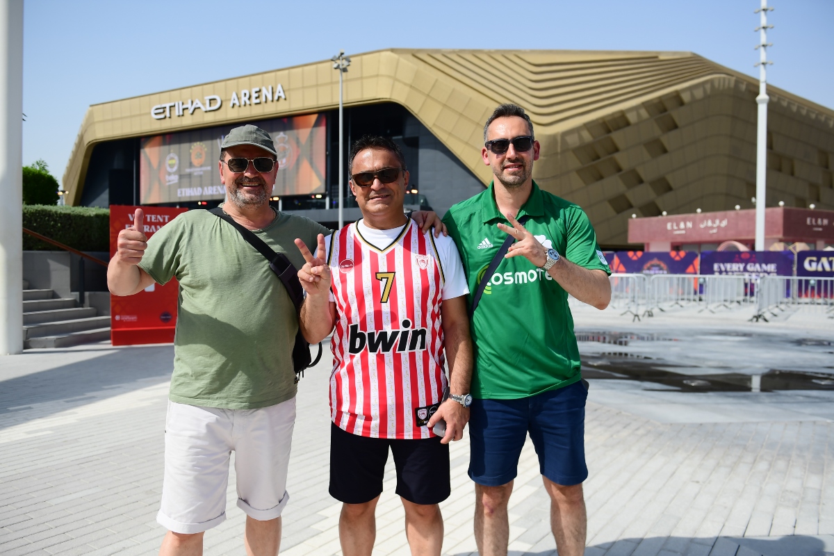 Υπό το αυστηρό βλέμμα της έφιππης αστυνομίας του Άμπου Ντάμπι και της ολοφάνερης διάθεσης για ένα τριήμερο γεμάτο μπάσκετ, όχι αντεγκλήσεων, στο Final Four της Euroleague οπαδοί του Ολυμπιακού και του Παναθηναϊκού όχι μόνο συνυπήρχαν στην Etihad Arena αλλά έβγαζαν κι αναμνηστικές φωτογραφίες, προσφέροντας γνήσιες στιγμές ελληνικής φιλίας.
