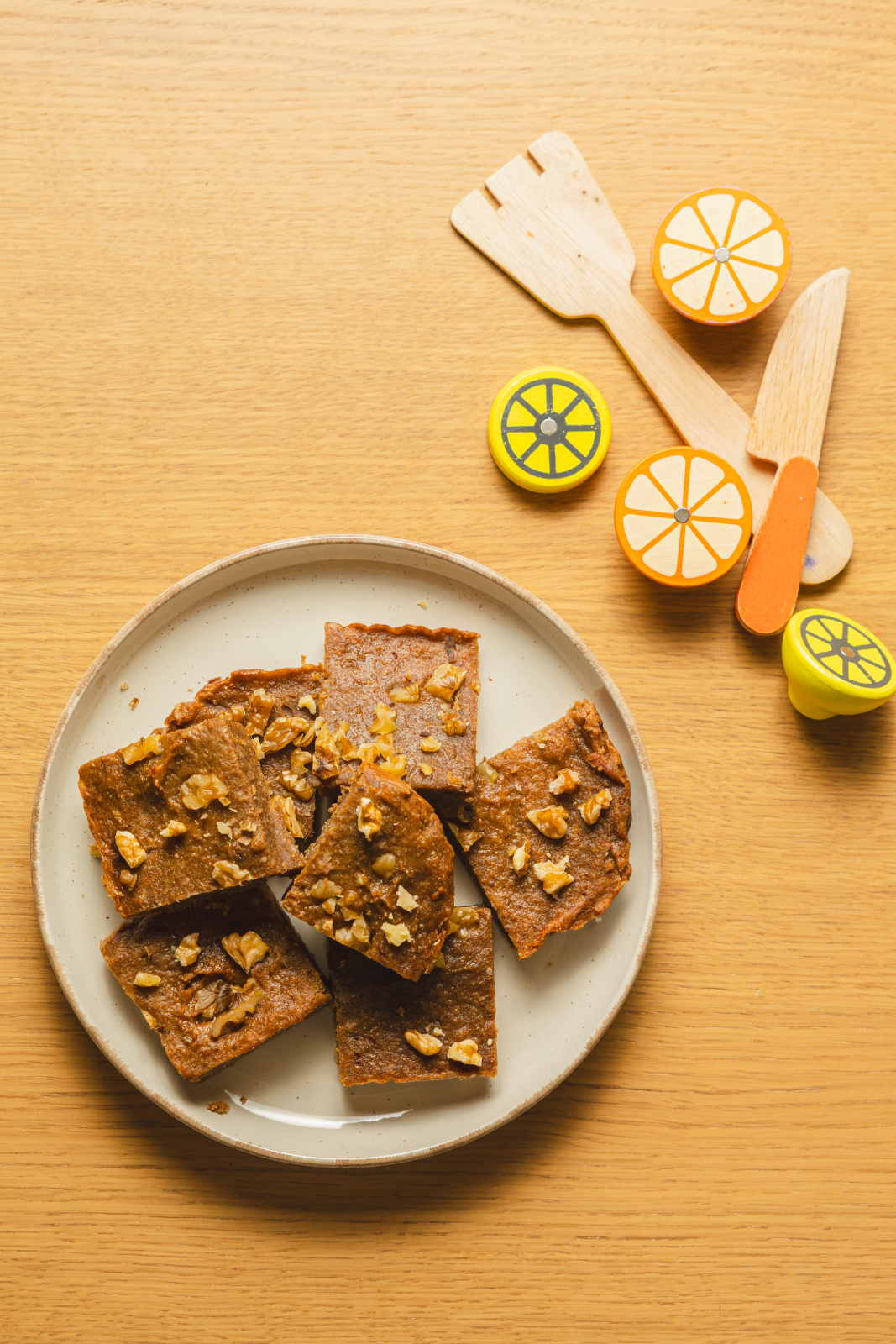 - Απλώνουμε το μείγμα σε ένα ταψάκι διαστάσεων 25 x 25 εκ. στρωμένο με αντικολλητικό χαρτί και το ψήνουμε σε προθερμασμένο φούρνο στους 180°C, στον αέρα, για περίπου 20 λεπτά.