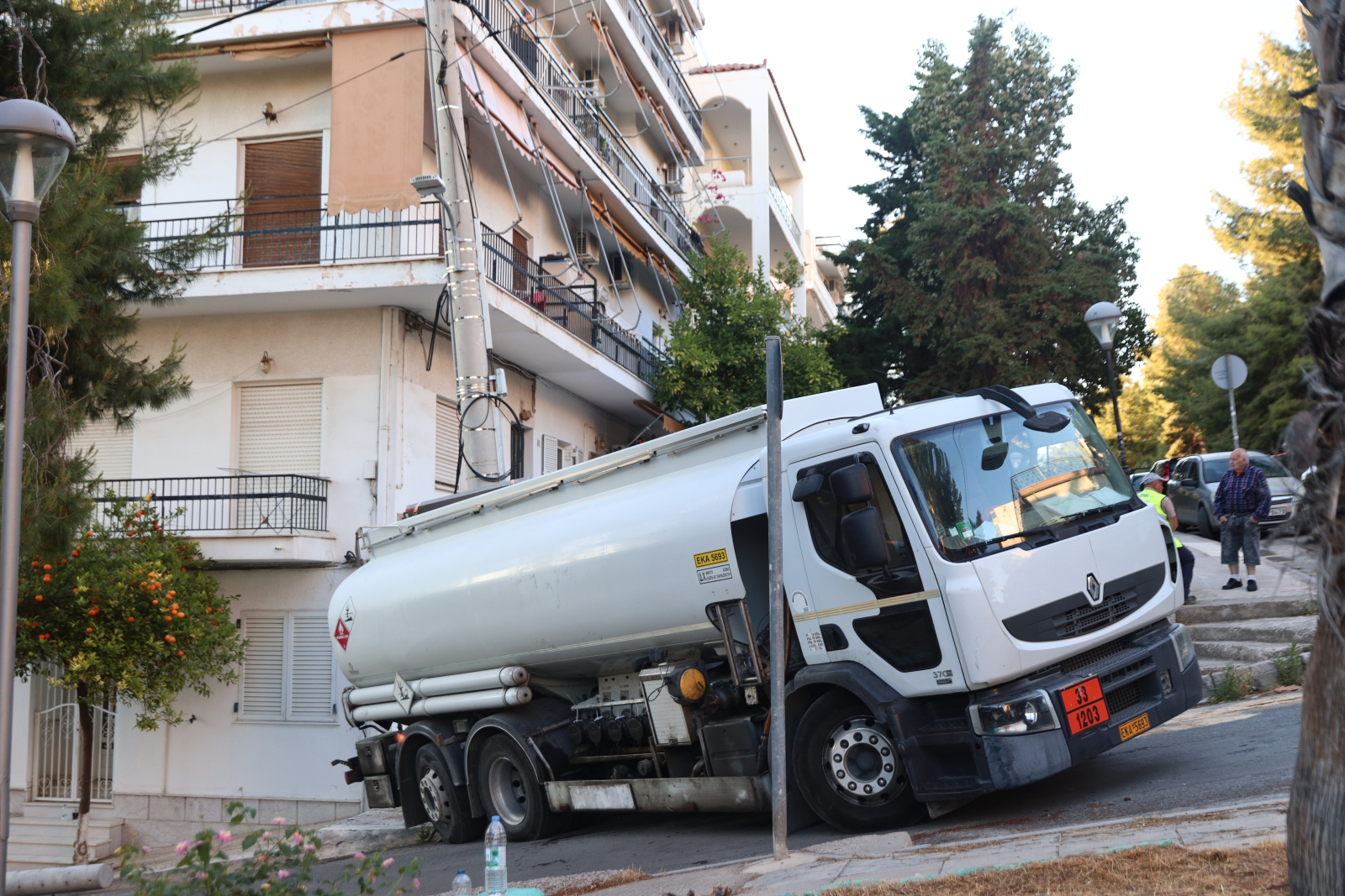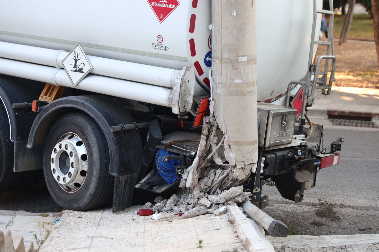 Ενα βυτιοφόρο φορτηγό, που μετέφερε βενζίνη και πετρέλαιο, προσέκρουσε λίγο πριν τις πέντε το απόγευμα της Δευτέρας σε κολώνα του ΔΕΔΔΗΕ στο Κερατσίνι.
