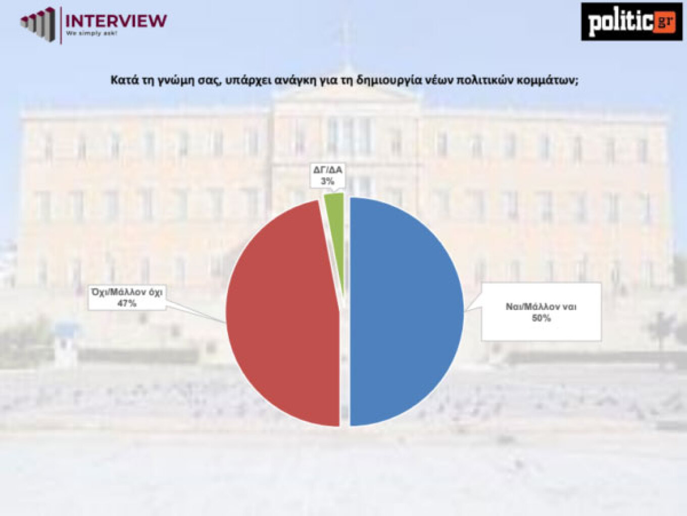 Το 50% είναι θετικό στο ενδεχόμενο δημιουργίας νέων πολιτικών κομμάτων, ενώ το 47% είναι αρνητικό.