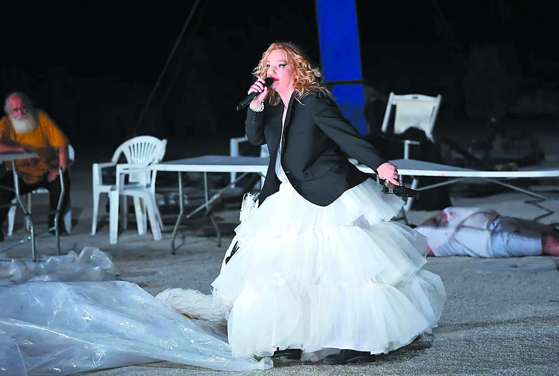 Η «Αφροδίτη» (Έλενα Τοπαλίδου) στον «Ιππόλυτο» της Κατερίνας Ευαγγελάτου το 2023.