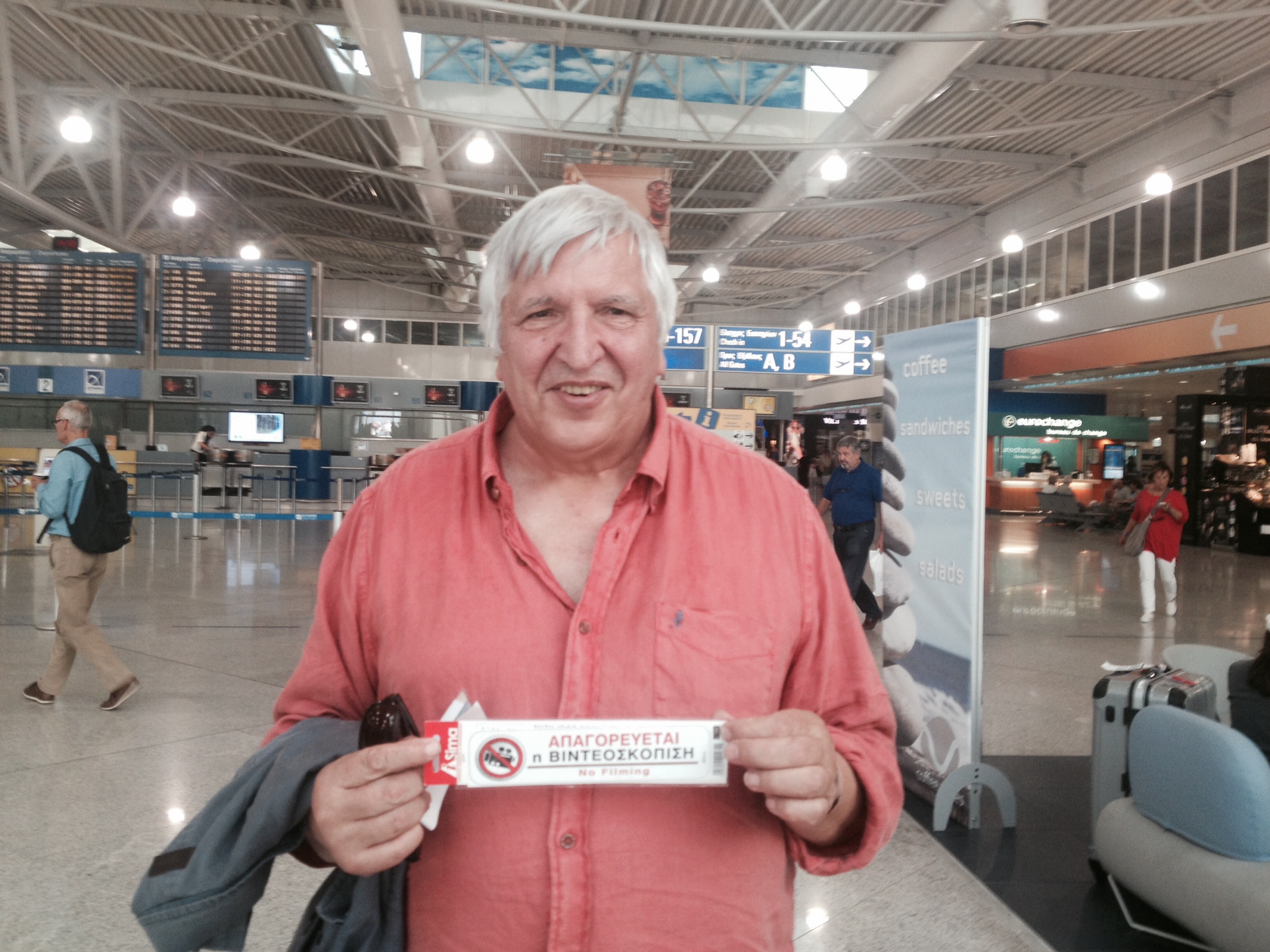 Ο Ματία Λάνγκχοφ στο αεροδρόμιο Ελευθέριος Βενιζέλος μετά την δεύτερη σύλληψή του για βεβήλωση του ιερού χώρου της Επιδαύρου.