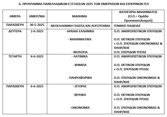 Το πρόγραμμα για τις Πανελλήνιες 2025